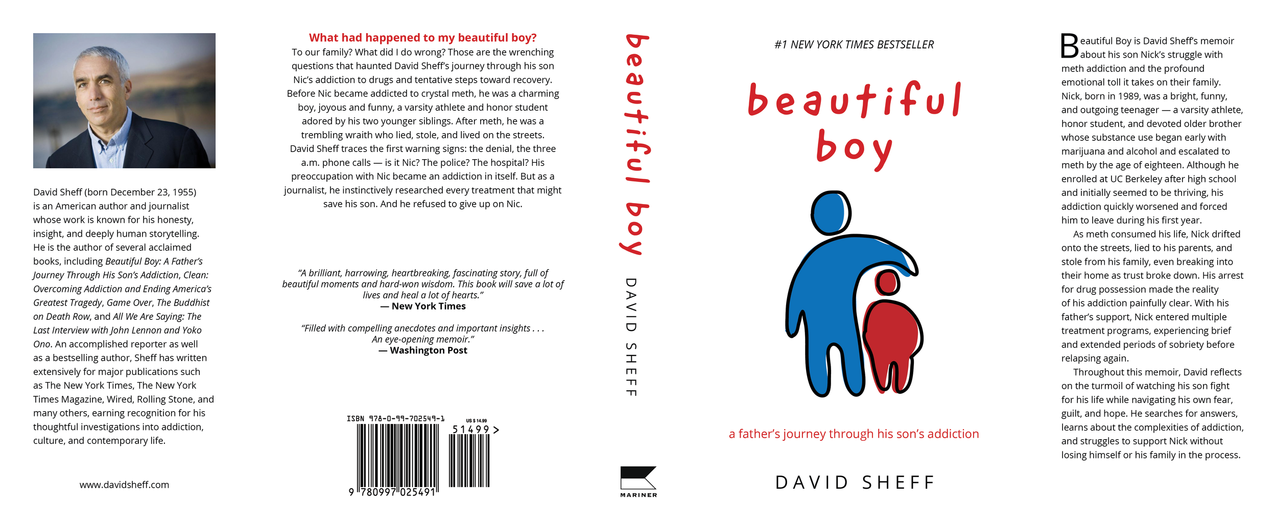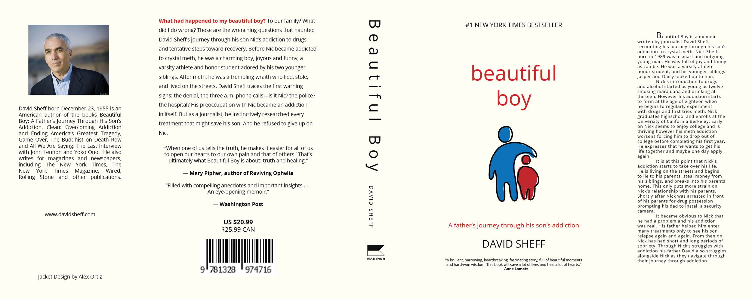 Tasked with reimagining a book jacket. I chose Beautiful Boy because of its lasting impact on me. I aimed for a clean, minimal design that highlights the father son relationship.